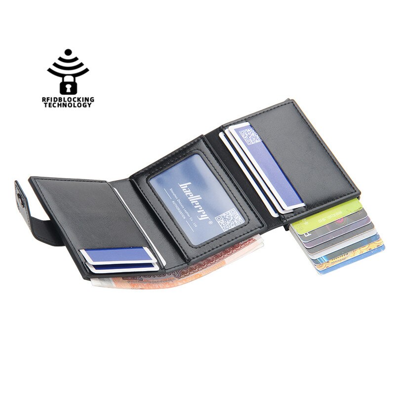 Aluminum Box Anti-magnetic Theft Brush Neutral Card Holder Rfid short Buckle Automatic Spring Card Card Holder Wallet