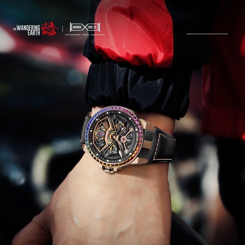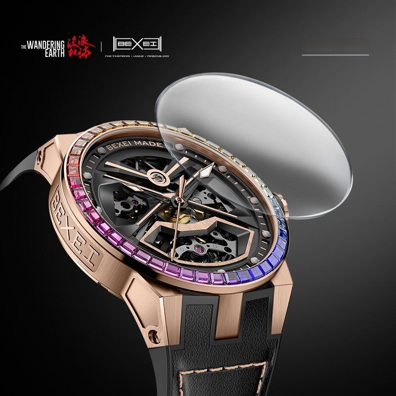 9115 watch for man mechanical waterproof 5ATM Automatic movement Reserve 80H Rainbow Crystal Bezel Rose Gold case
