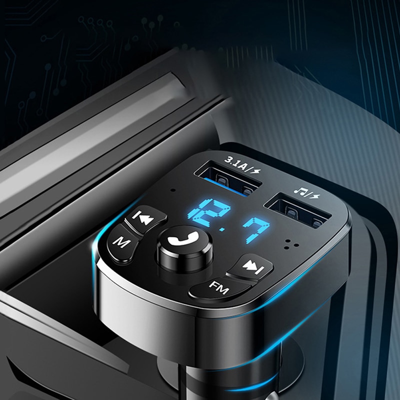 Product Features:High Performance Bluetooth-compatible FM Transmitter: Solid Bluetooth-compatible and FM connections stream music straight from your phone to your cars sound system.Easy Pair:Easily pair your smartphone in seconds and stream music straight from your phone to your car's sound system. This will automatically connect to its memorized paired Bluetooth-compatible device when power on.Voltage Display:Voltage display feature ensures security reminder at a glance.Hands-Free Calls:Bluetooth-compatible 5.0 technology provides a stable connection and echo-cancellation reduces background noise for clearer calls. Built-in microphone with Echo Cancellation and Noise Suppression (CVC) technology can effectively create full duplex sound quality. Easily answering/redialing/dismissing or ending a call just simply click a button.Dual USB Ports:Comes with 5V-2.1A and 5V-1A two charging ports, you can get your devices full charged in short time, support charging two devices simultaneously. Help you enjoy in-car stereo streaming and charge Your smart device at the same time.3 Music Playing:Support Bluetooth-compatible Music/ USB Disk/ TF Card / MP3 music player. Connect your Smart phones or other Bluetooth-compatible enabled devices via Bluetooth-compatible to streaming your music, or you can insert a USB flash drive or a TF card (max capacity 32GB) to enjoy your music. Stream music and calls directly from your Mobile devices to car stereo system via FM radio signal (87.5-108.0 MHz).Safety:Ensure driving safe without disturbance.Compatibility:Fit for most of the smartphones, tablet and more devices that equipped with Bluetooth-compatible function.Product Specification:MaterialABSDisplayLED dot matrix screenBluetooth-compatible versionV5.0Bluetooth-compatible Transmission distance5mFM frequency87.5-108 mhzFM transfer distance2metersInput voltage12-24VOutput5V/3.1APackage Includes:1 x Car Bluetooth-compatible FM Transmitter