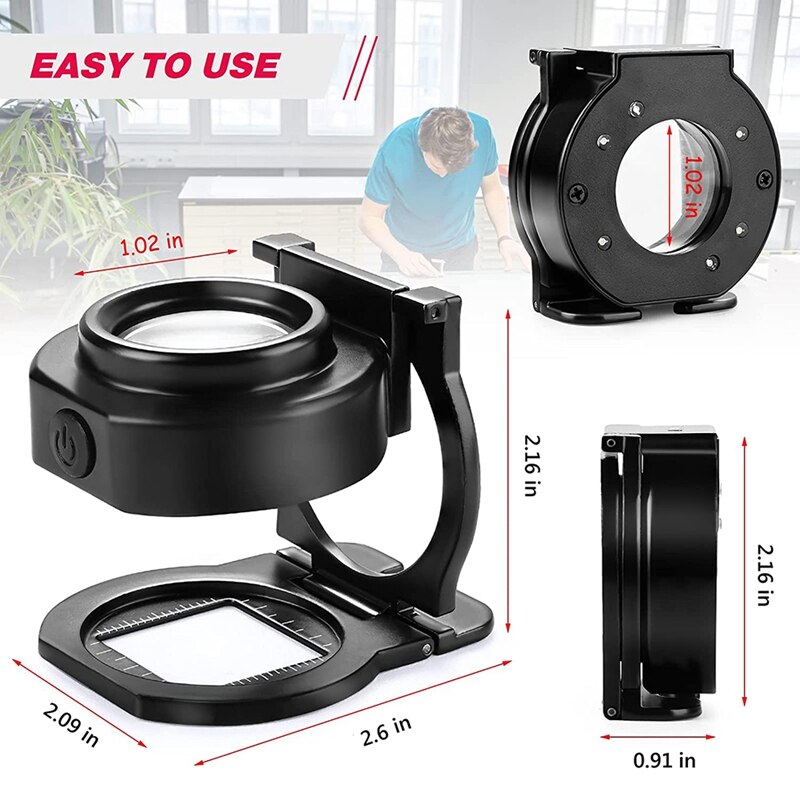 EASY TO TURN ON/OFF - Just Press down the soft silicone button to turn on the 4 white lights for usual magnified observation, press again to 2 UV lights for money detector magnifier. Press the third time to turn off the light. This small jewelers loop will be a good helper at work.