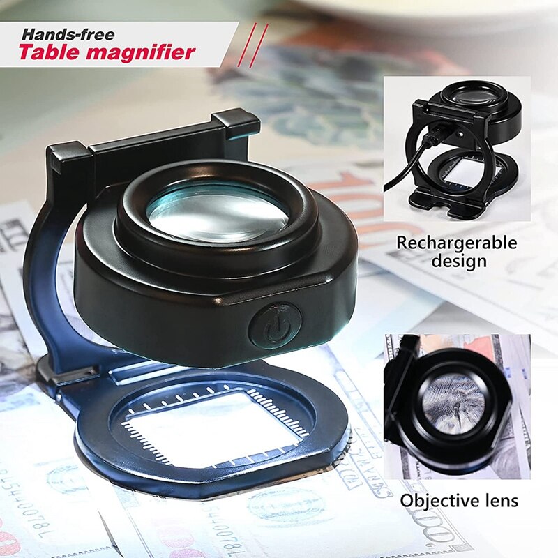 RECHARGEABLE - This pocket magnifying glass is equipped with a rechargeable lithium battery and comes with a micro-USB charging cable. It greatly prolongs the working time of LED light and you don't need to purchase batteries anymore!