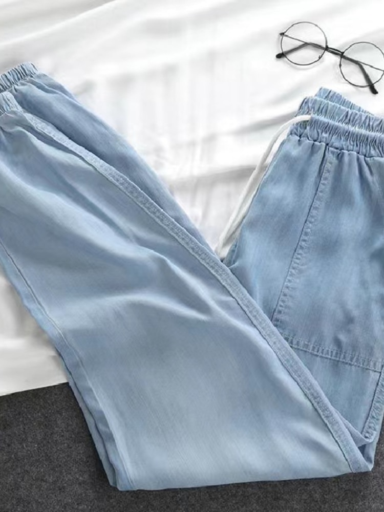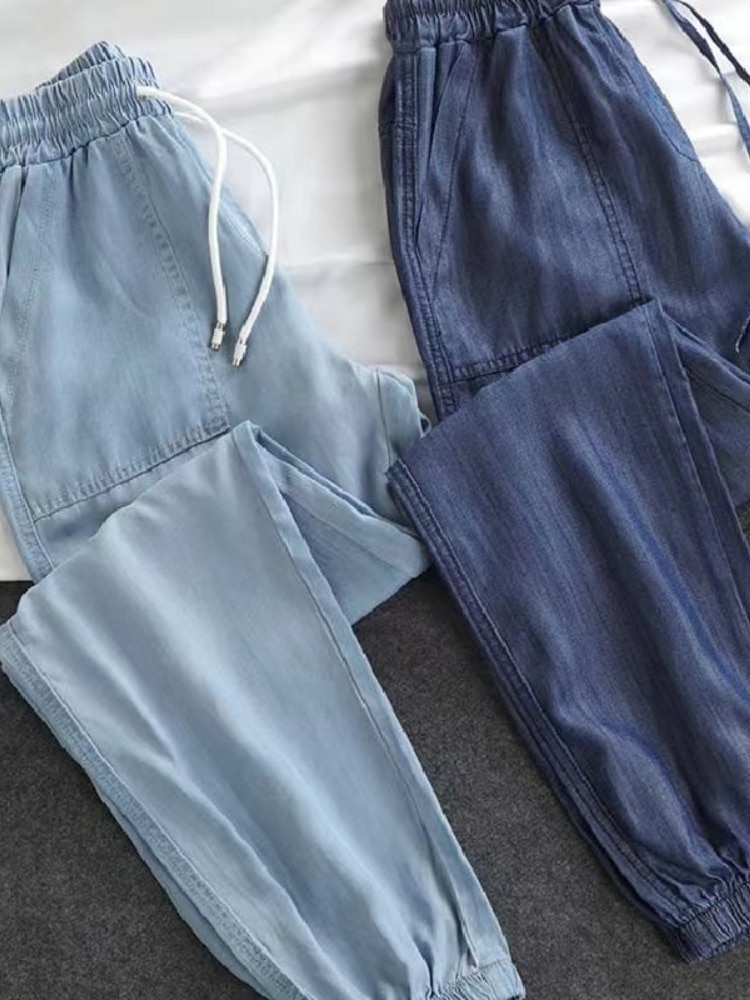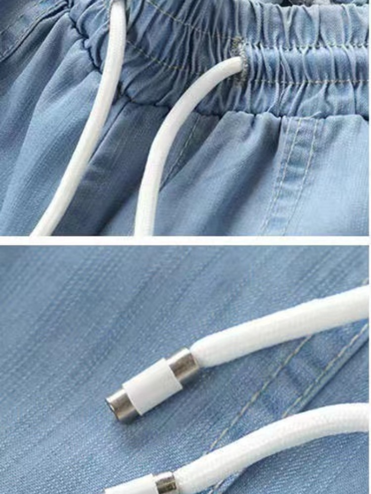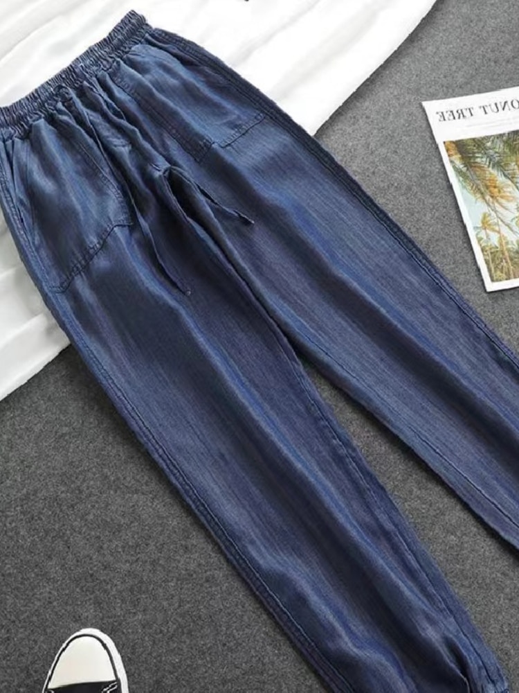 Women Pants Summer New 2023 LOOSE Lace-up Thin High Elastic Woman Jeans Oversize Trousers Soft Cool Female Casual Denim Pants