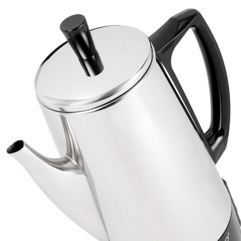 Brews great coffee, hot and rich! Enjoy a refreshing brew anytime with the Presto® 6-Cup Capacity Stainless Steel Coffee Maker #02822. It makes two to six cups of delicious-tasting coffee as fast as a cup a minute, then keeps it piping hot automatically and ready to serve. This Presto® coffee maker is made of luxurious stainless steel, including the filter basket and perk tube, for easy cleaning and lasting beauty. The signal light indicates when the coffee is ready to serve. The traditional design features an easy-pour spout and stay-cool handle for elegant coffee service anytime.