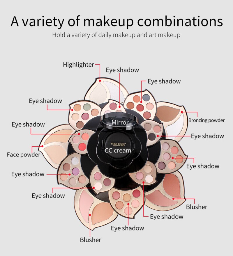 Sdattor MISS ROSE Black Rose Shape Multi-function Makeup Palette Profession Full Set Of Makeup Waterproof Lasting Cosmetic Set N