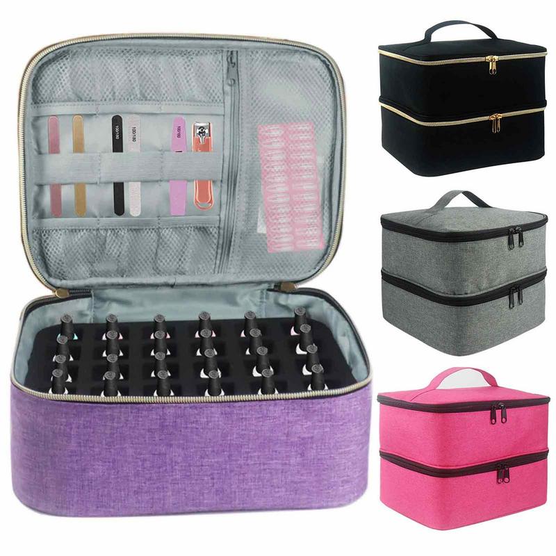 Sdattor Nail Polish Carrying Case Nail Organizers And Storage 30 Bottles Double-Layer Handheld Holder For Brushes Nail Files