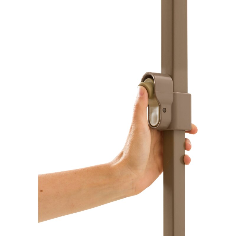 • Oversized, pagoda-style canopy with vented roof and a mesh pocket for small item storage