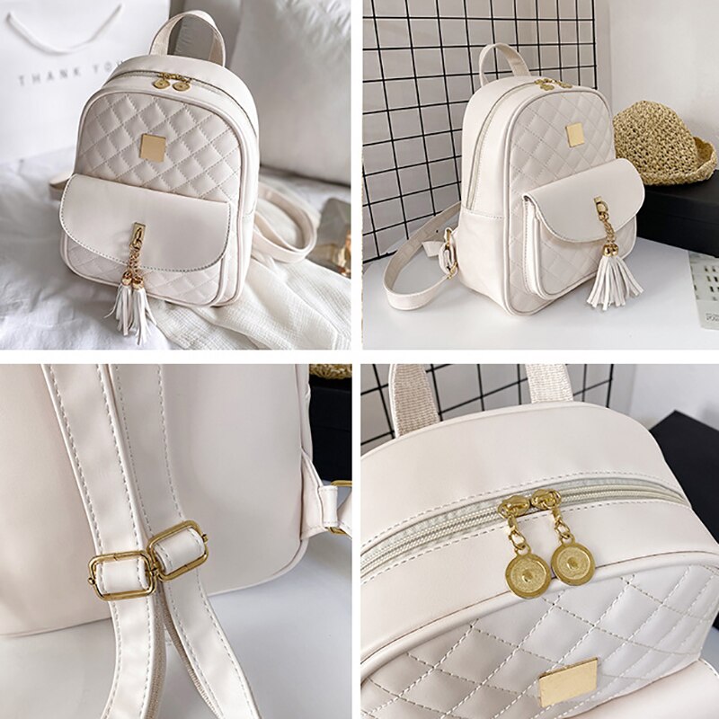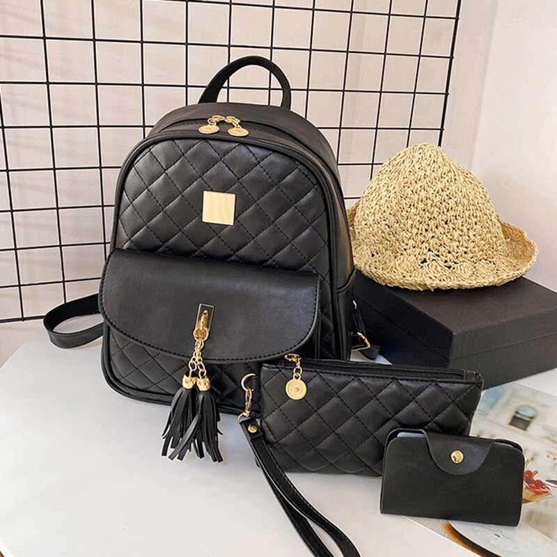 Women Composite Bag High Quality Pu Leather Backpack School Bags Black Backpack Mini Purse Phone Bag Three-piece Set Kawaii Bag