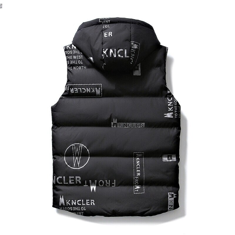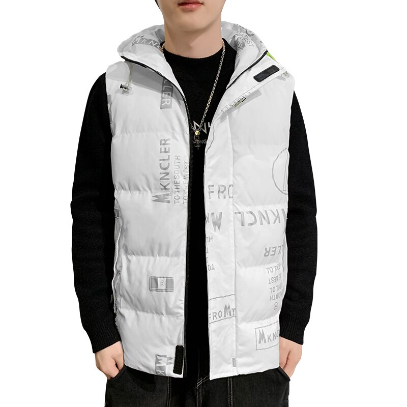 Korean Fashion 2021 Winter Men Hooded Vest Warm Thicken Sleeveless Handsome Student Coat Loose Zipper Letter Printed