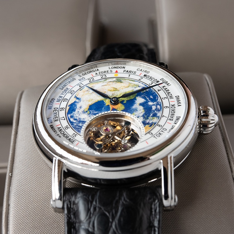Sugess Earth Art Enamel Dial Seagull ST8000 HandWind Movement Genuine Tourbillon Watch Luxury Business Mens Wristwatch Sapphire