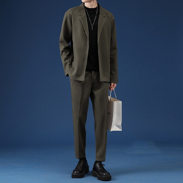 Male Casual Suit Luxury Jackets Blazer Set Streetwear Stylish Korean 2 Pieces Sets with Pants Za 2022 Spring Overcoat & Trousers