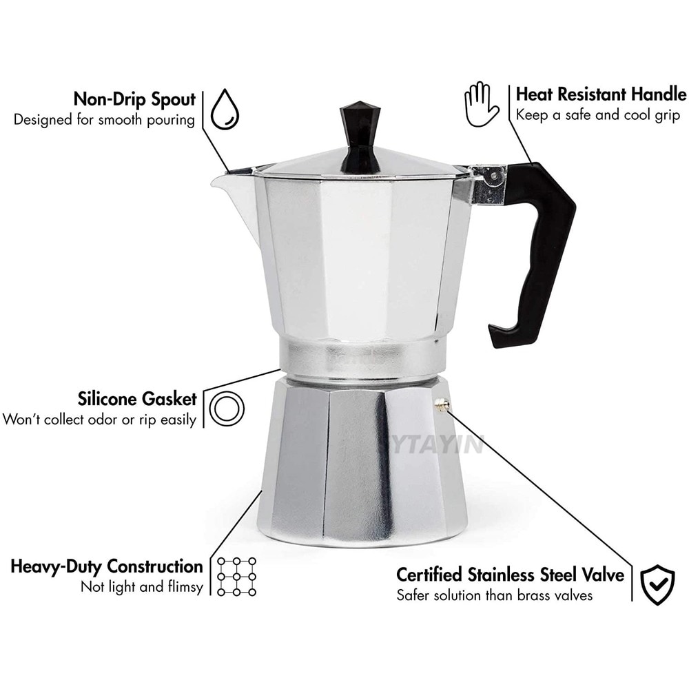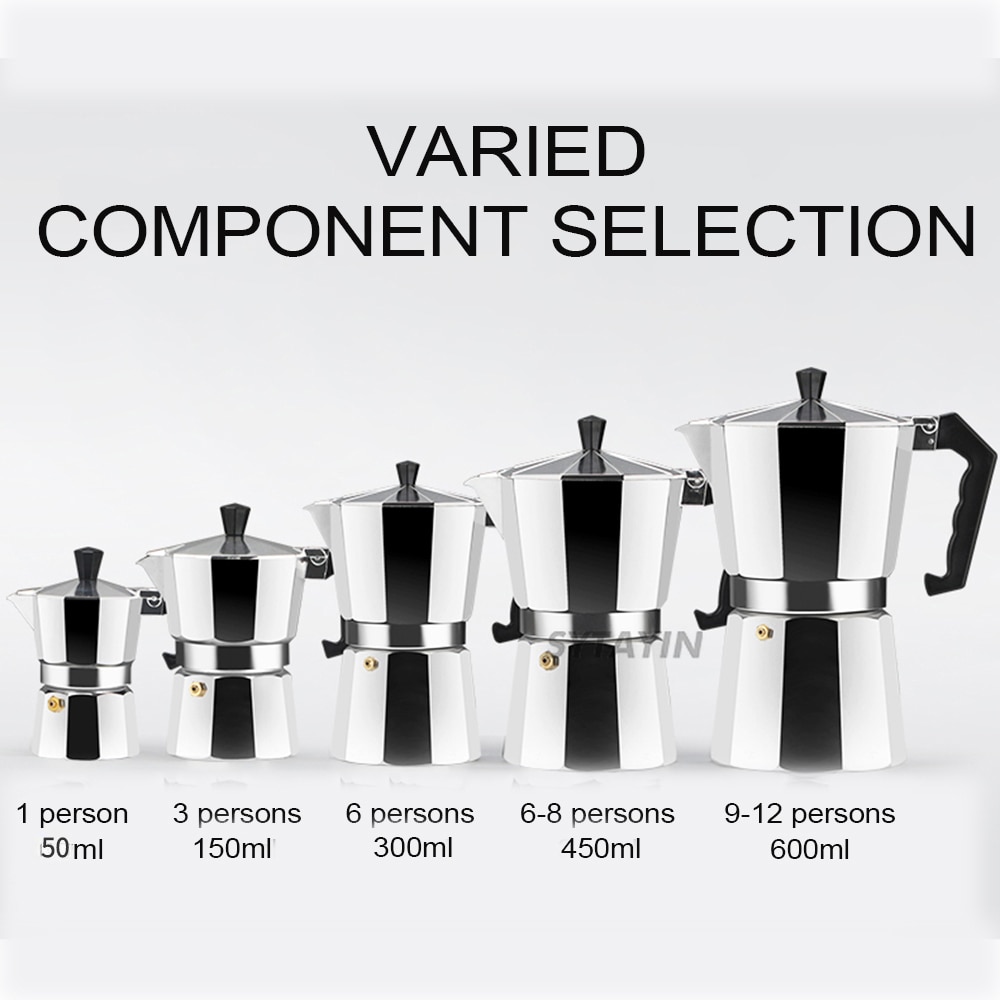 Coffee Maker Aluminum Mocha Percolator Pot High Quality Espresso Coffee Pots 1Cup/3Cup/6Cup/9Cup/12Cup Stovetop Coffee Maker