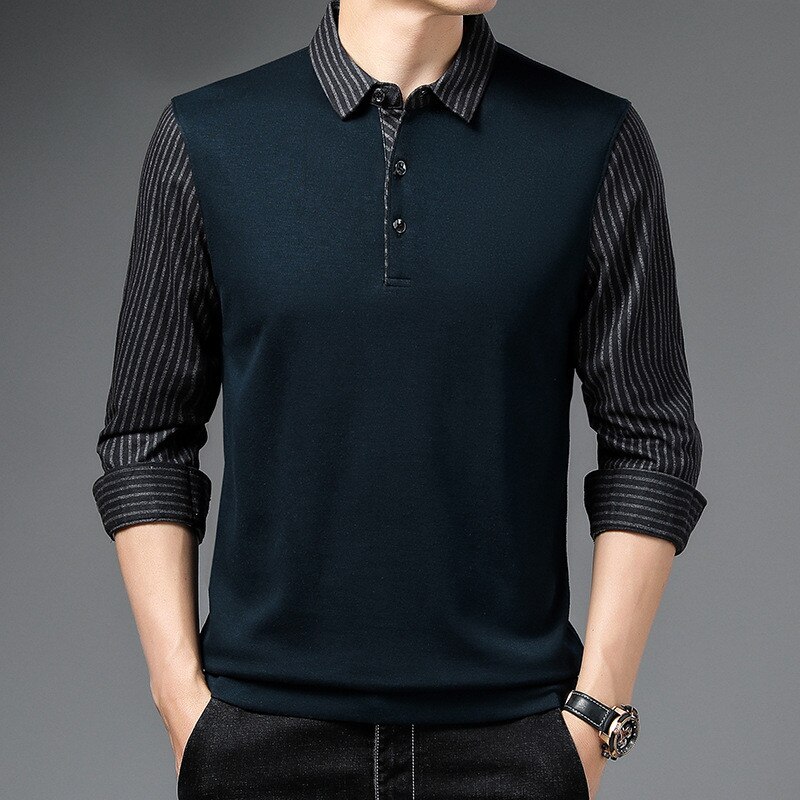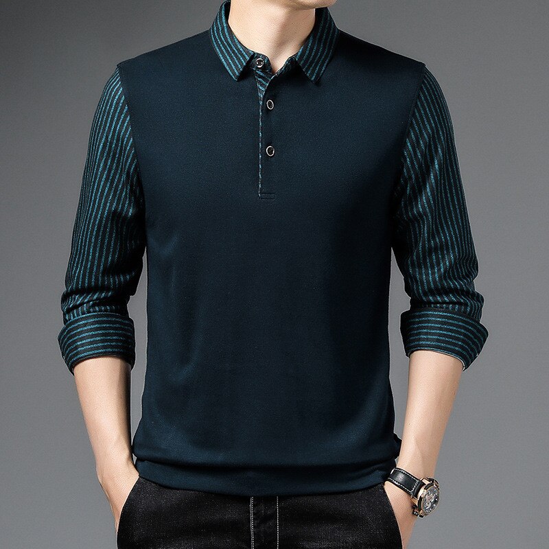 New Fashion Men Striped Polo Shirts for Men Solid Color Casual Designer Long Sleeve Tops Button Collar Men's Clothing 2022