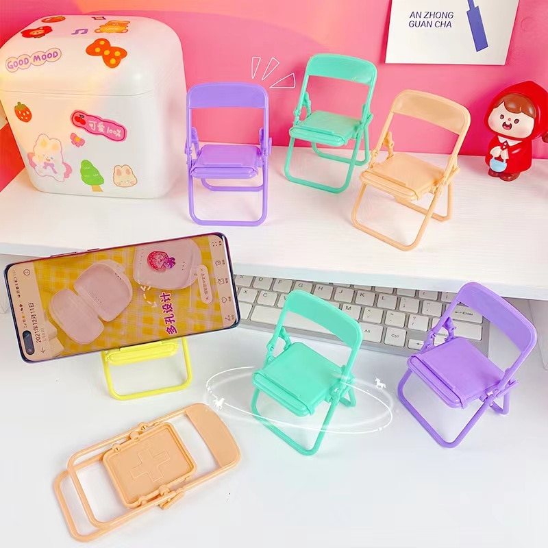 4pcs Cute Sweet Creative Desktop Mini Chair Stand Can Be Used As Decorative Ornaments Foldable Lazy Drama Mobile Phone Holder