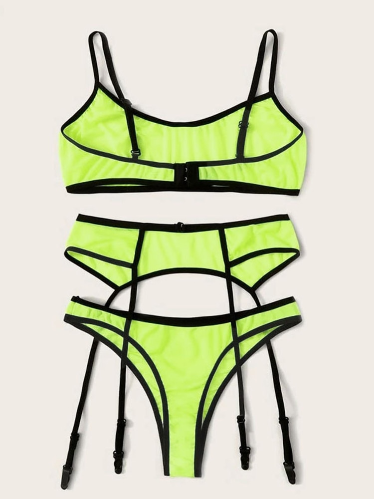 New 3pcs Lingerie Sexy Bra Set Women's Lace Sling Bra Bandage Thong Garter Sleepwear Sexy Tow Hook Underwear Lingerie Sets