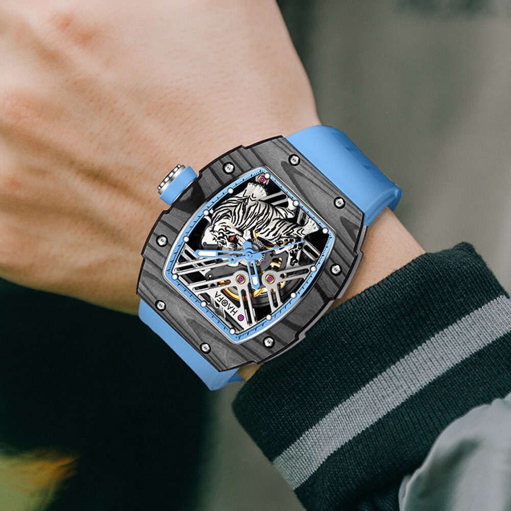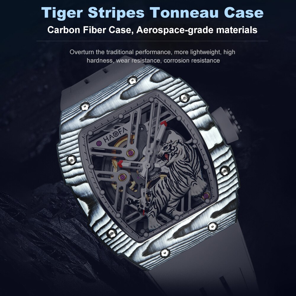 Haofa Skeleton Automatic Mechanical Watch for Men 3D Tiger Carbon Fiber Watch Sapphire Luminous Waterproof Men Watch 1973