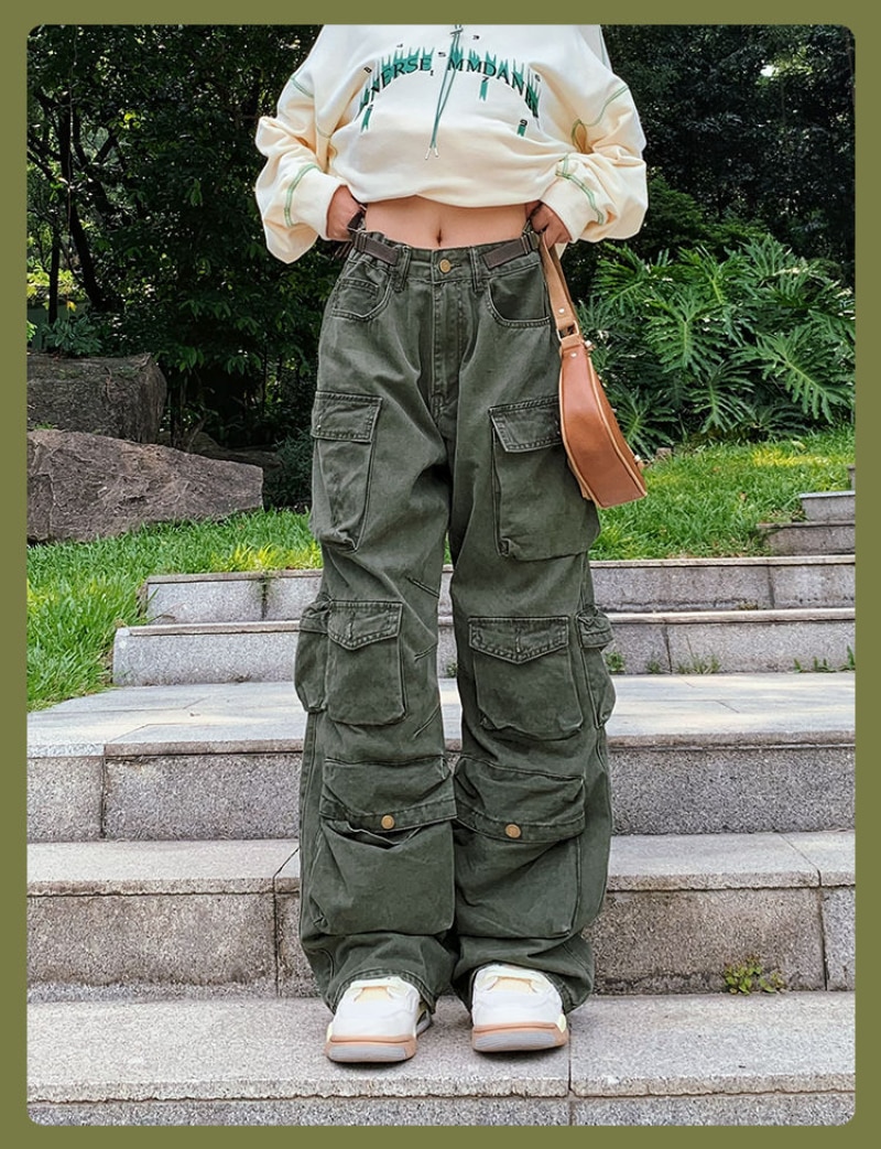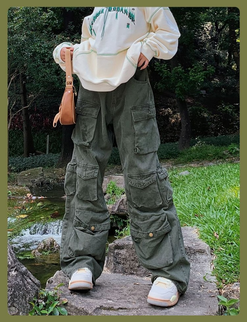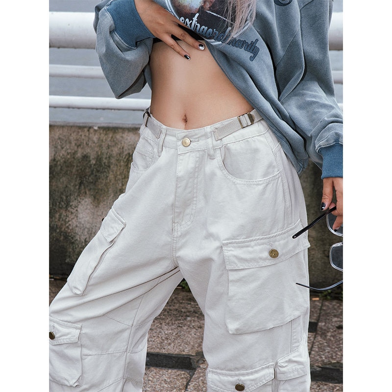 Street Popular Harajuku Style White Multi Pocket Workwear Men's Autumn Winter Loose Casual Straight Pants Work Pants Men New
