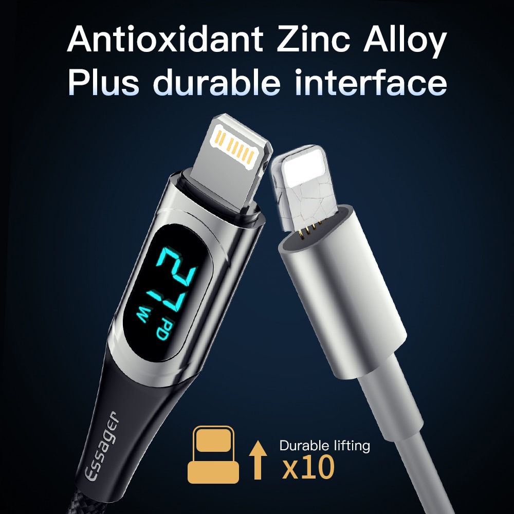 ESSAGER 20W PD USB C Cable Fast Charging Cable for iPhone 14 13 12 Pro Max XR Digital Display Mobile Phone Data Cord for iphone