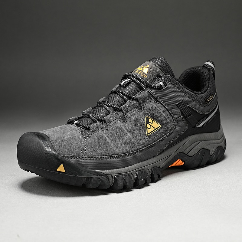 HIKEUP New High Quality Men Hiking Shoes Black Grey Green Khaki Leather Climbing Shoes Outdoor Walking Sneakers Rubber Sole Factory Outlet Made In China