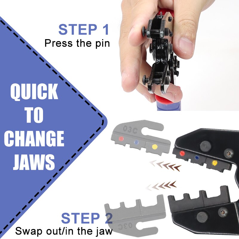 8 In 1 Crimping Tools Sets YFX Quick Replace Jaw for Heat Shrink, Non-Insulated, Open Barrel, Non-Insulated Ferrules Pliers