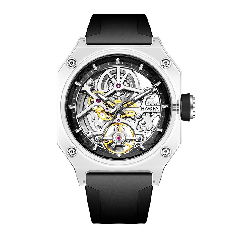 Haofa Crystal Transparent Automatic Watch for Men Luxury Hollowing Waterproof Luminous Mechanical Watch for Men 2208