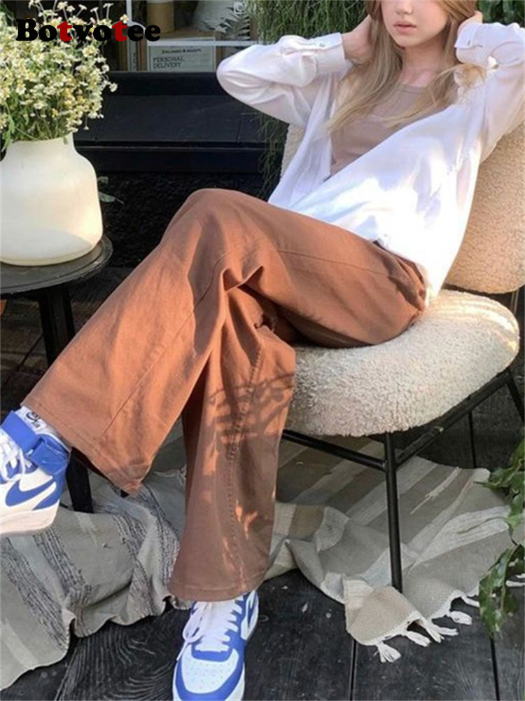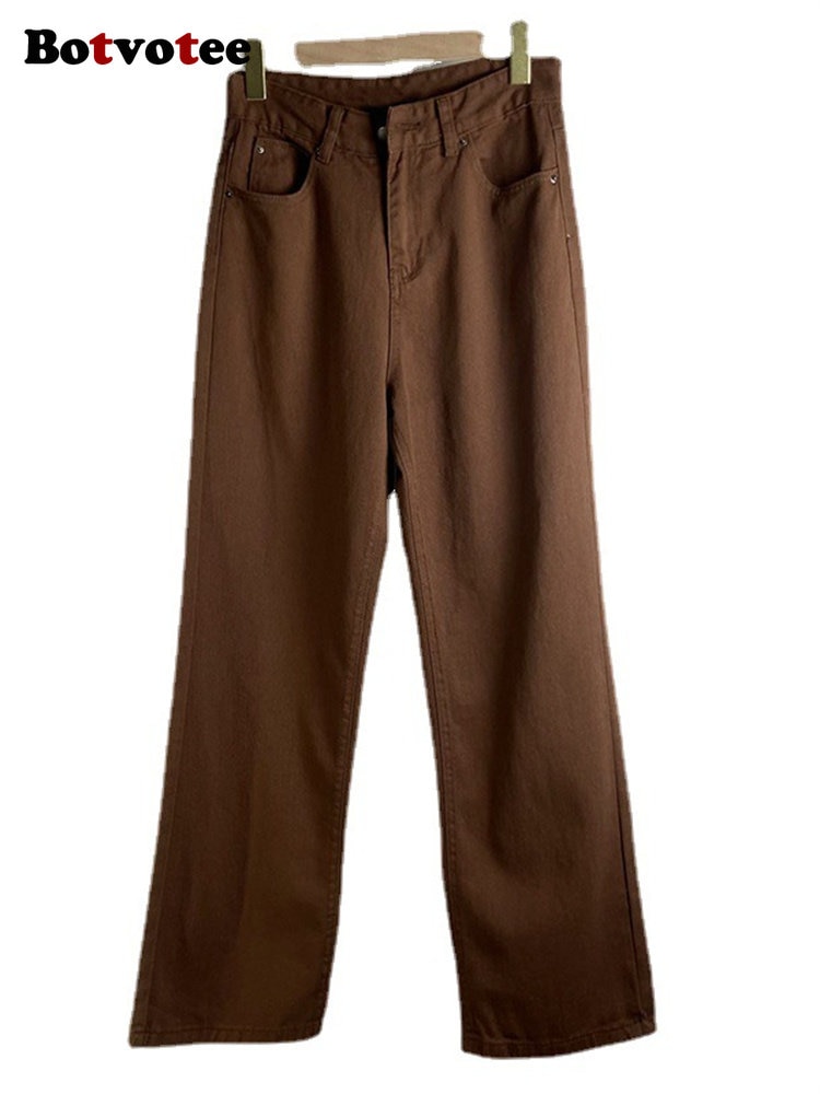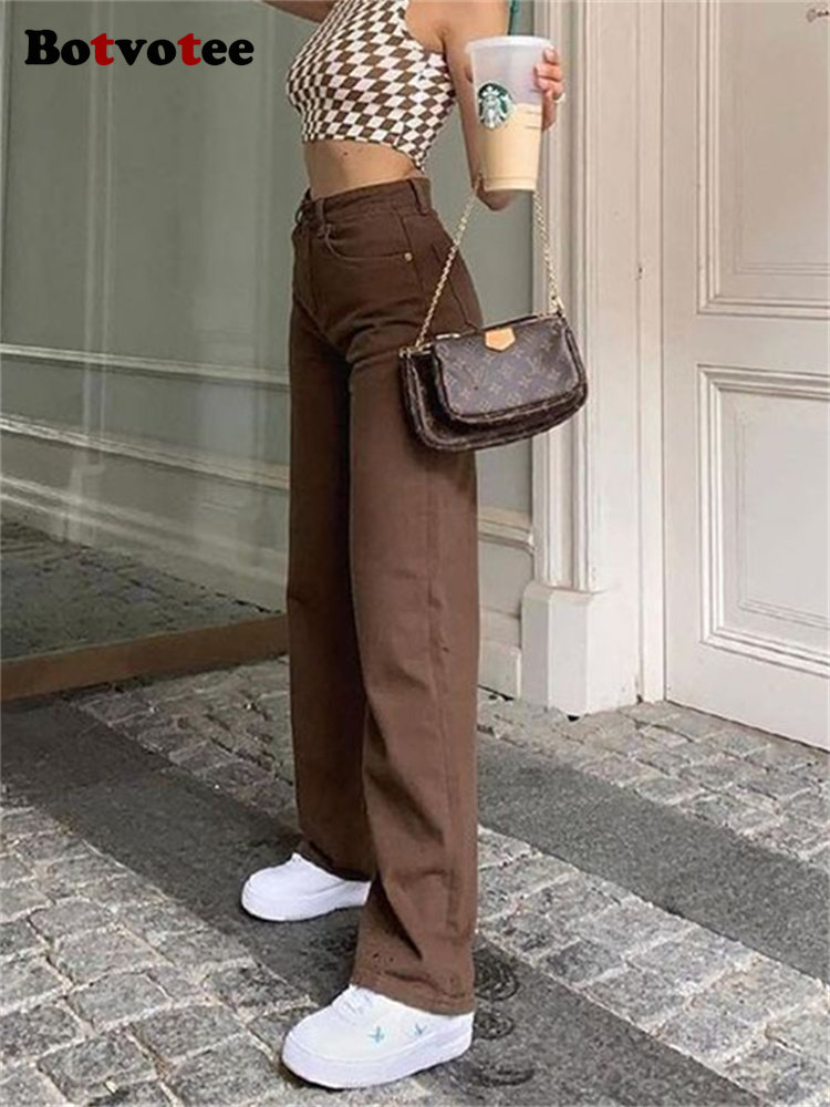 Botvotee High Waisted Jeans for Women 2023 New High Waisted Wide Leg Jeans Pants Streetwear Fashion Casual Solid Straight Pants