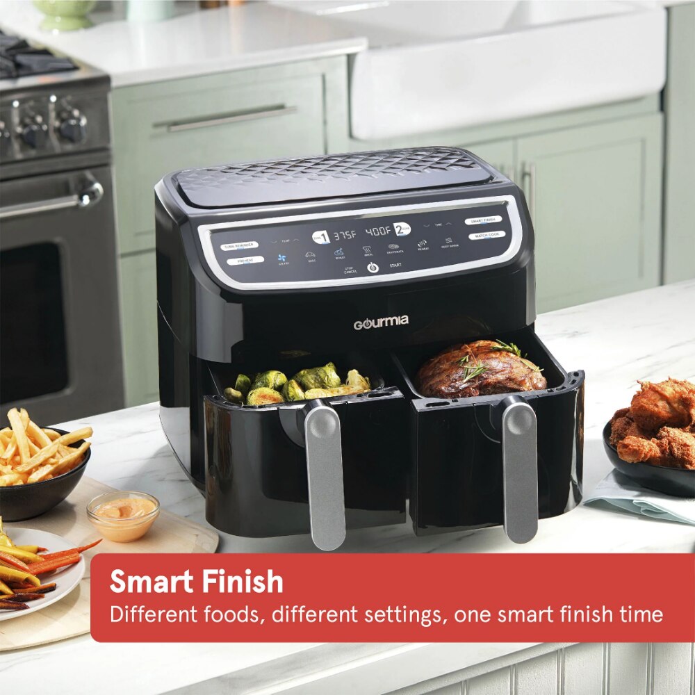 Gourmia 9 Qt 7-in-1 Dual Basket Digital Air Fryer with Smart Finish and Guided Cooking