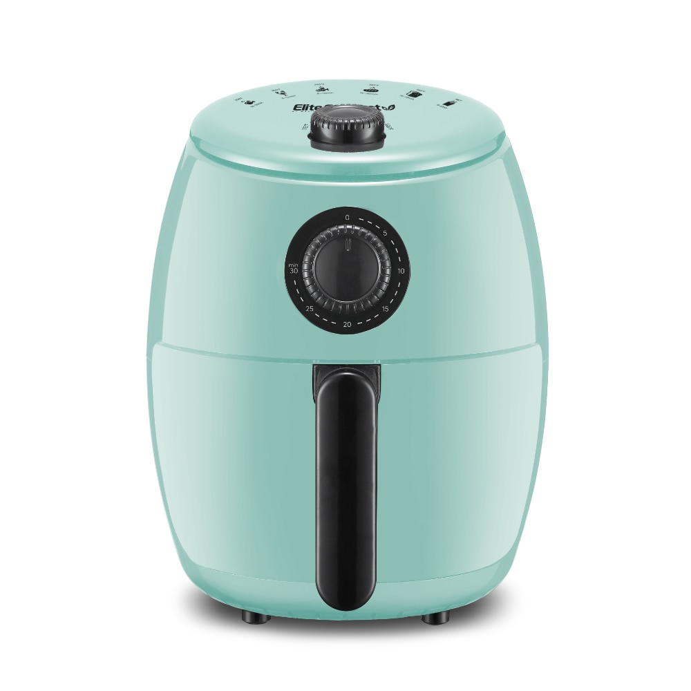 The Elite Platinum Oil-Free Air Fryer has a variety of functions to handle a wide array of cooking tasks. With its easy to use Timer and Temperature control knobs, you can fry, cook, or even bake your favorite meals and snacks with ease! Not only can you cook foods without the mess of oil but you can cook faster which saves you time and energy. Unlike most conventional deep fryers, the Oil-Free Air Fryer's unique vapor system combined with circulating hot air will automatically make foods crispier and of course healthier without oil.Prepare healthier food using little to no oilFried foods are crispy outside and moist insideCook up to 1.5lbs of food per batchFaster than conventional cooking methodsAdjustable time and temperature knobs give you ultimate control and versatility when cooking2.1Qt. capacity Drawer Pan holds up to 1.6lbs of foodCool touch pan handle allows you to safely and easily remove the pan after cookingHeating elements create even hot air circulation for perfectly cooked results30 minute timer with auto shut offHeating indicator lightOverheat protectionAdjustable thermostat control up to 395°FNon-stick coating for removable pan & frying rack1000 wattsIncludes bonus recipesManufactured in ChinaETL approvedThe Drawer Pan and rack are dishwasher-safe (top rack only).Clean the inside of the appliance with hot water and a non-abrasive sponge.