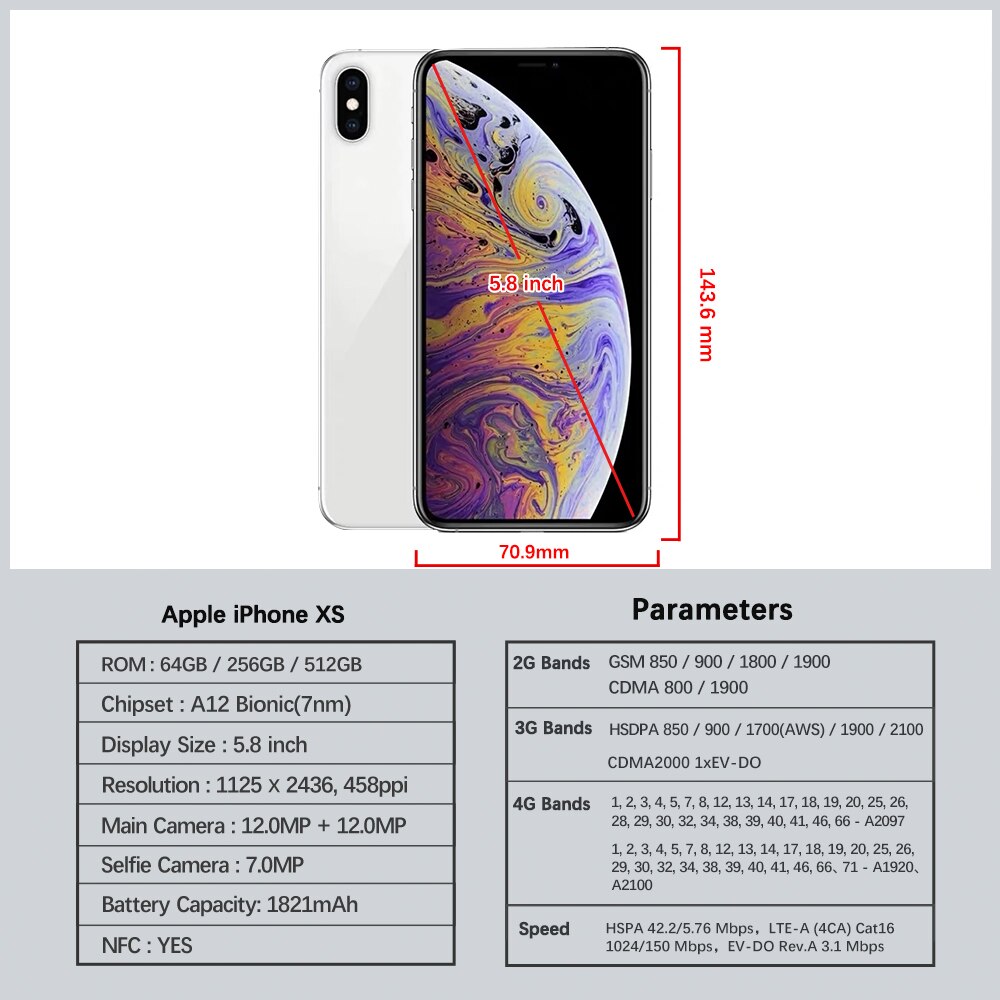 Apple iPhone XS 5.8"/XS MAX 6.5“” RAM 4GB ROM 64GB/256GB/512GB Smartphone Hexa Core IOS A12 Bionic LTE 4G Unlocked Used Phone