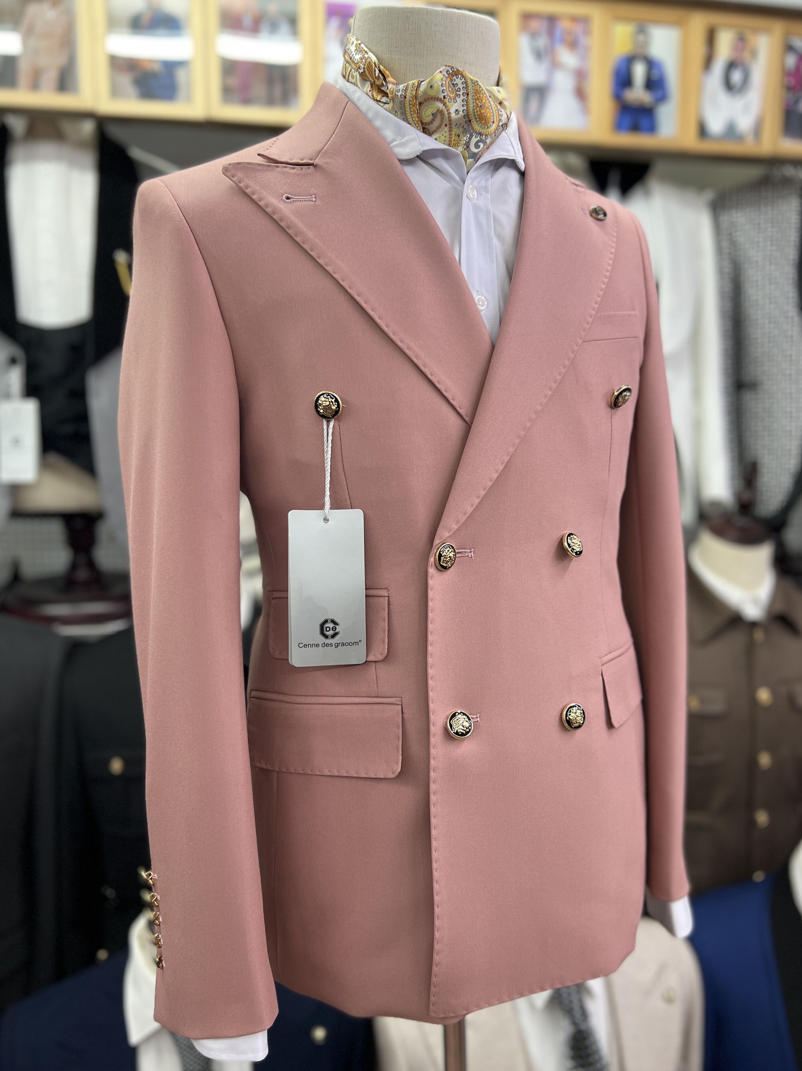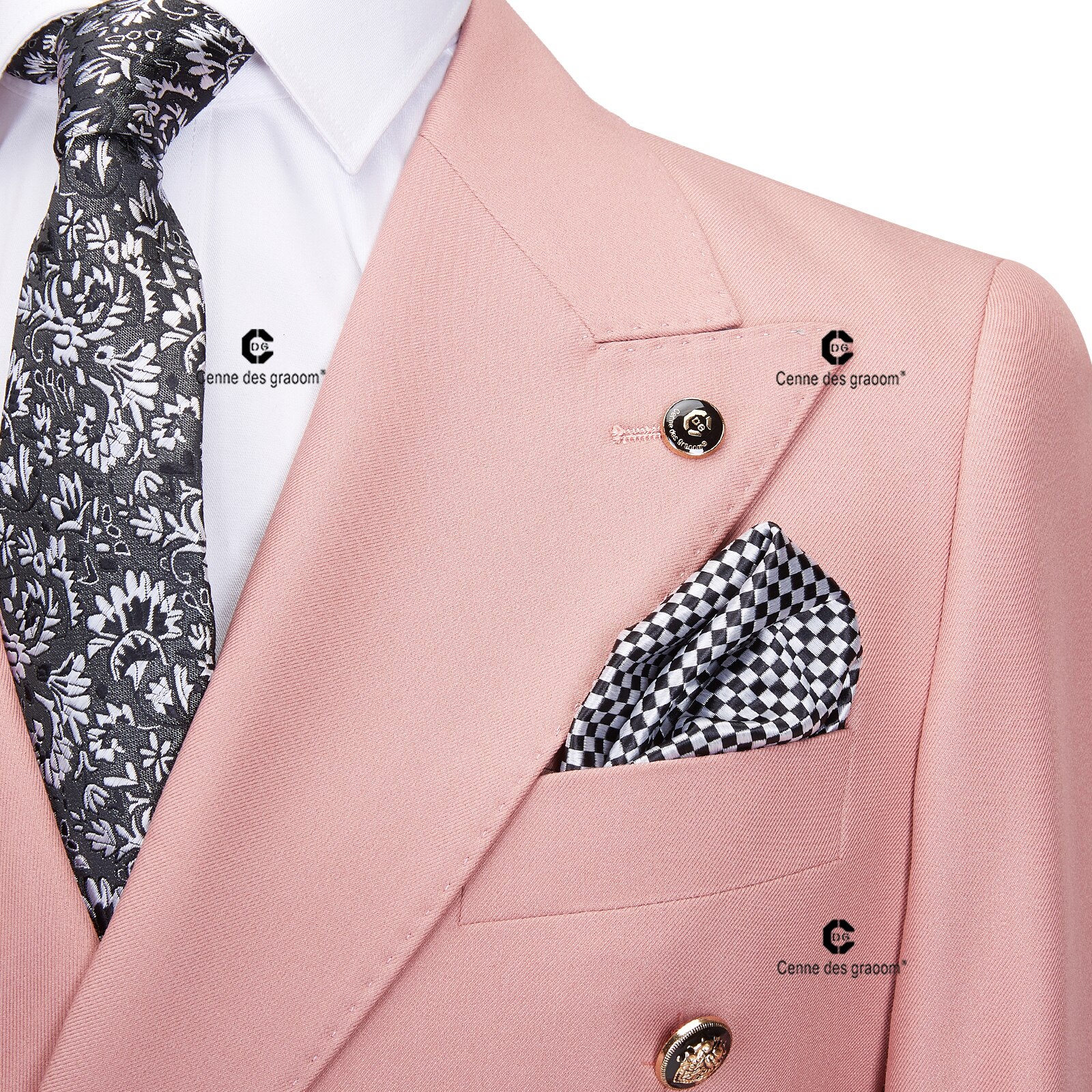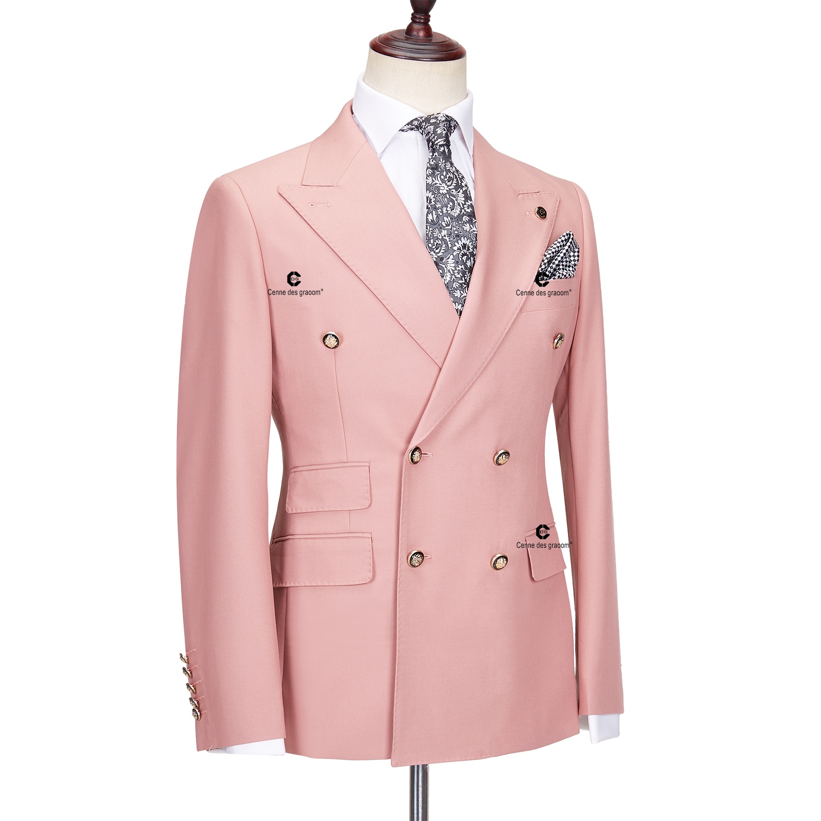 Cenne Des Graoom 2023 New Elegant Men Suit Double Breasted Two Pieces Set Slim Fit High Quality Wedding Party Costume Pink
