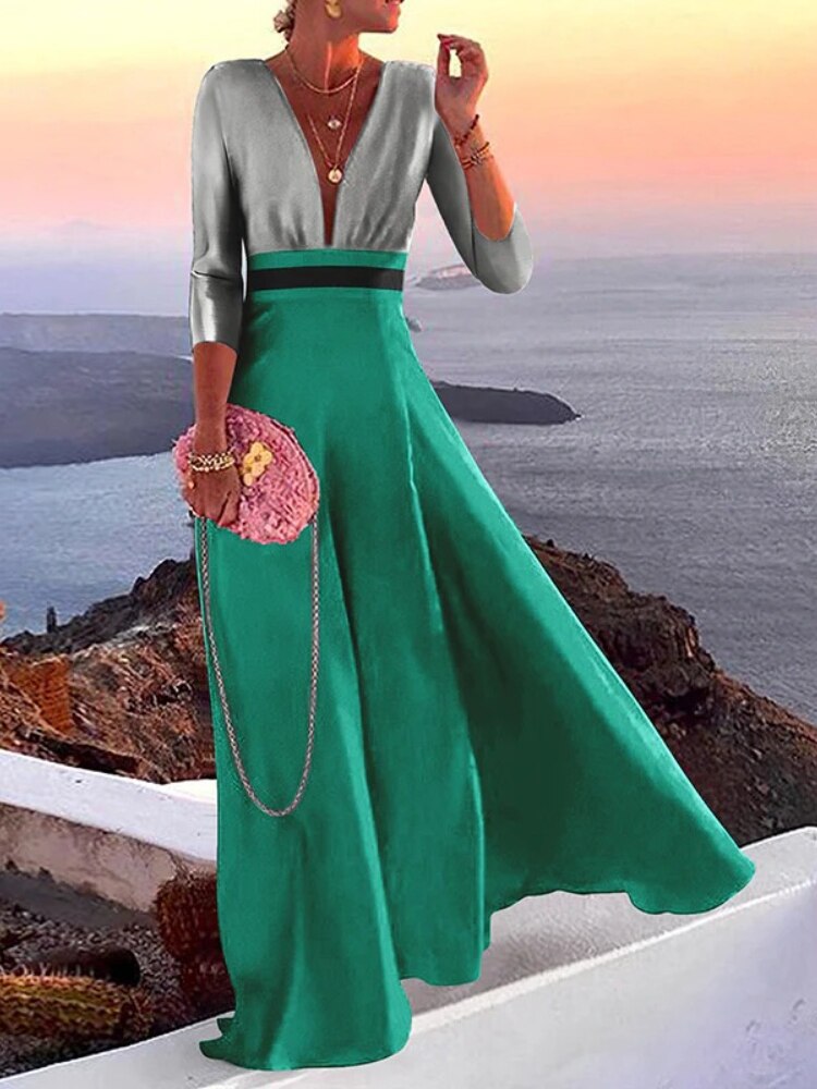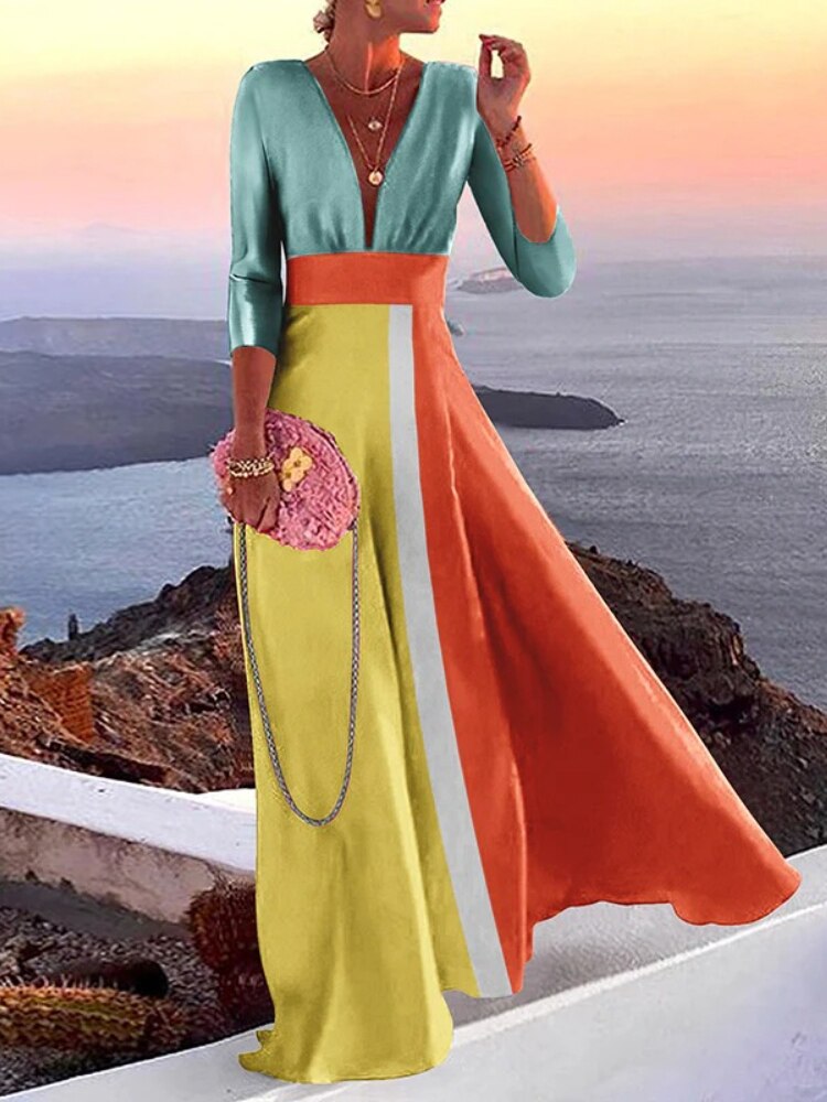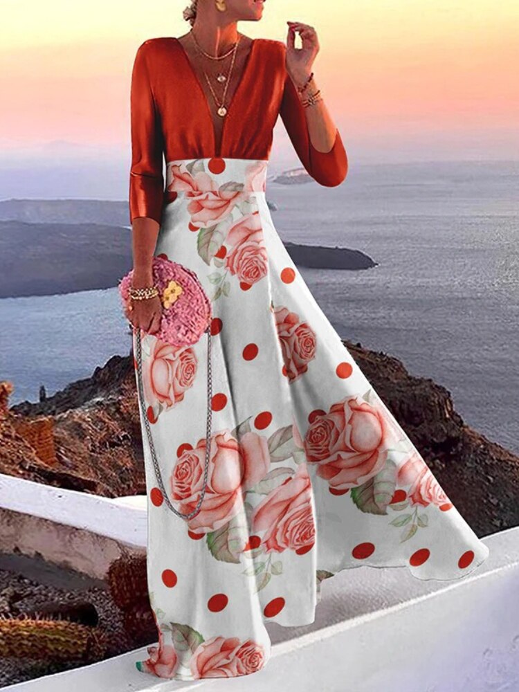 Summer Dress Women 2023 Elegant Fashion Print Long Dresses Bohemian Woman Clothing V-Neck Contrast Color Oversize Vintage Robe