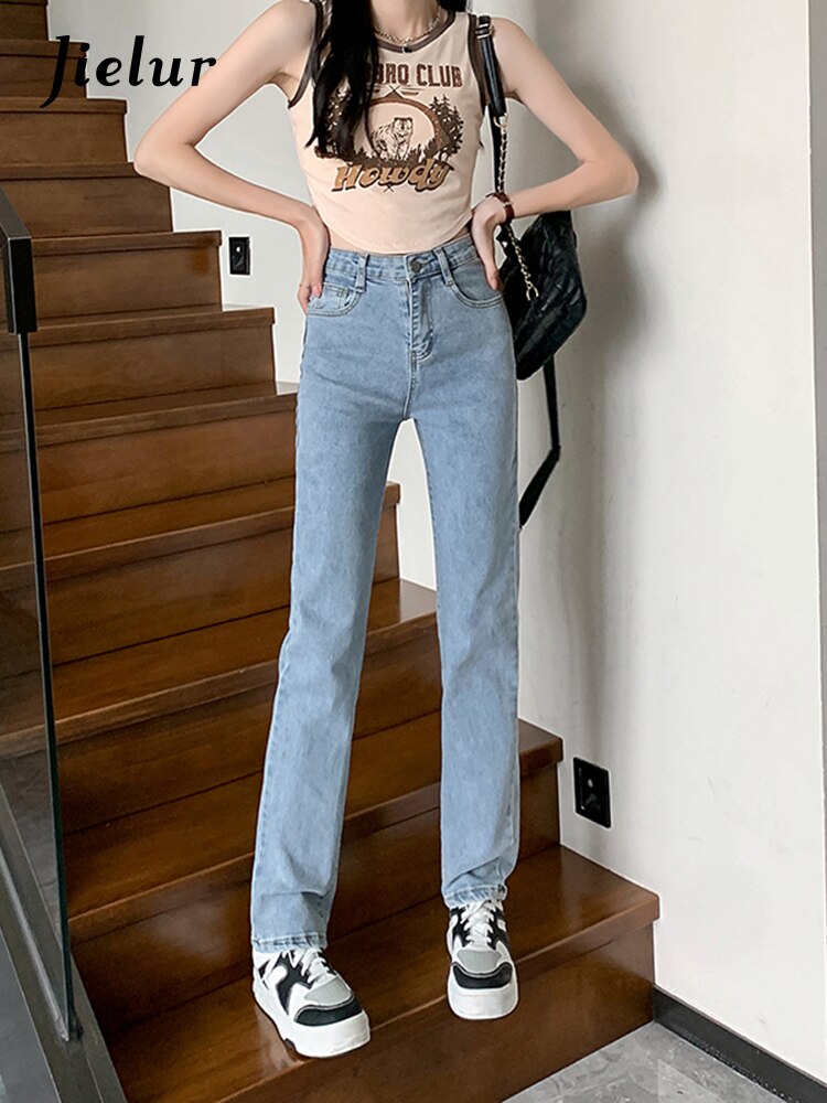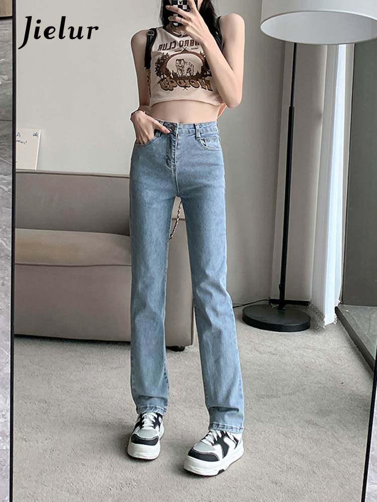 Jielur Light Blue Denim Pants Narrow Jeans Women Spring Korean New Fashion High Waist Slim Straight Jeans Female Simple Basic