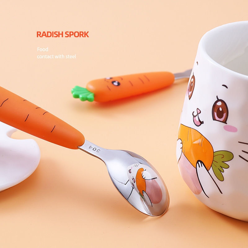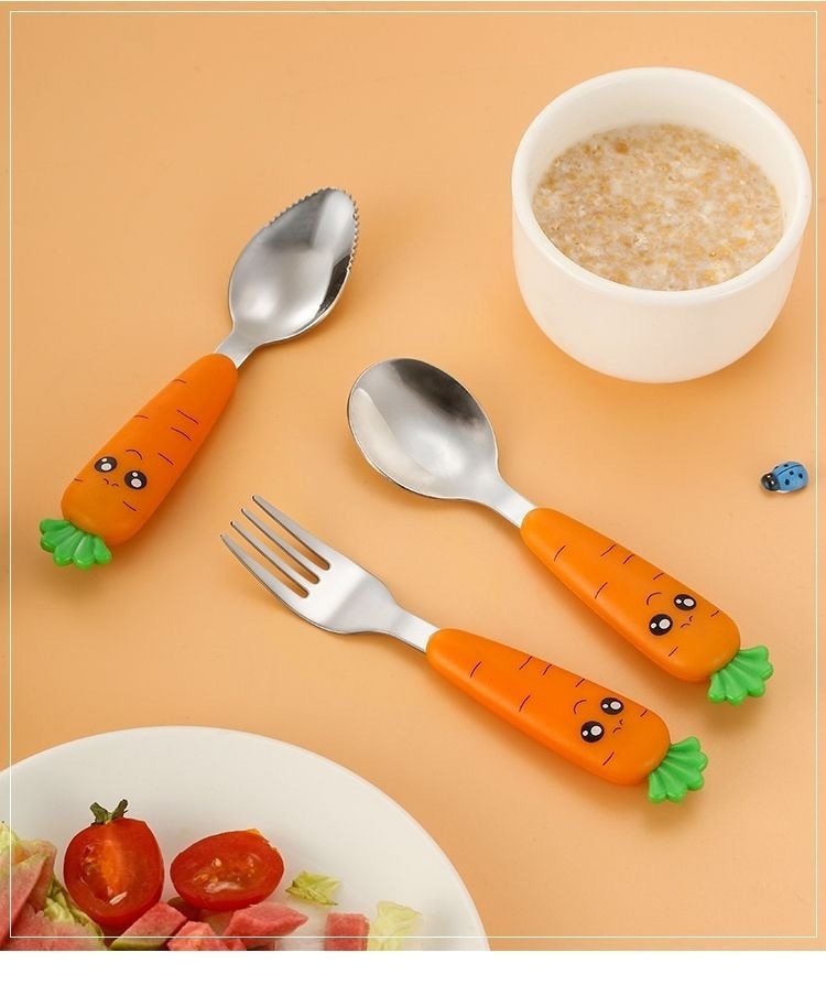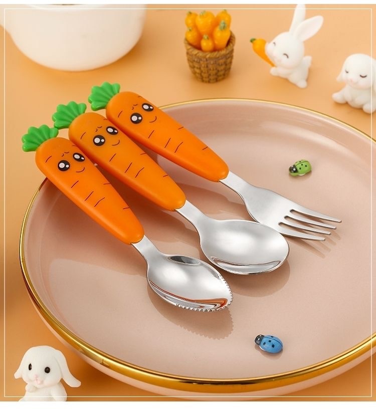 Carrots Tableware Set Children Baby Stainless Steel Spoon Fork Flatware With Box Kids Dinnerware Infant Feeding Kitchen Supplies