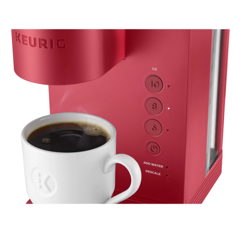 Introducing the K-Express Essentials Single Serve Coffee Maker : Keurig quality at our most welcoming price. This have-it-all brewer is a great way to experience genuine Keurig quality and rich, full-flavored coffee made with the push of a button convenience – at a truly attractive price. This streamlined, modern coffee maker gives you a range of Keurig features that can enhance your coffee routine. You can enjoy a delicious cup of hot, freshly brewed coffee in minutes - with no prep and no mess. The 36 oz reservoir means you can make cup after cup without refilling, and back-to-back brewing means you don't have to wait for your brewer to reheat before brewing a second cup. Plus, you can choose your favorites from the hundreds of coffee brands and flavors available in K-Cup pods, including tea or hot cocoa. You can even use a My K-Cup Reusable Coffee Filter with your own favorite ground coffee (sold separately). And all of this comes at a price that helps you put America's #1 single serve coffee maker brand on your counter. Now everybody can truly enjoy a rich cup of coffee at the push of a button, because Keurig is for all.