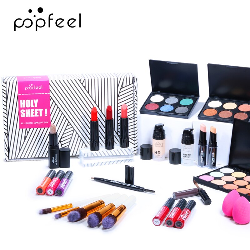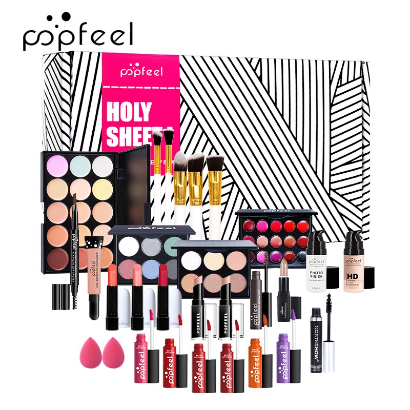 Sdattor POPFEEL 30Pcs/set Professional Cosmetic Set Eyeshadow Lipstick Mascara Foundation Concealer Lip Glaze All-in-One With Ba