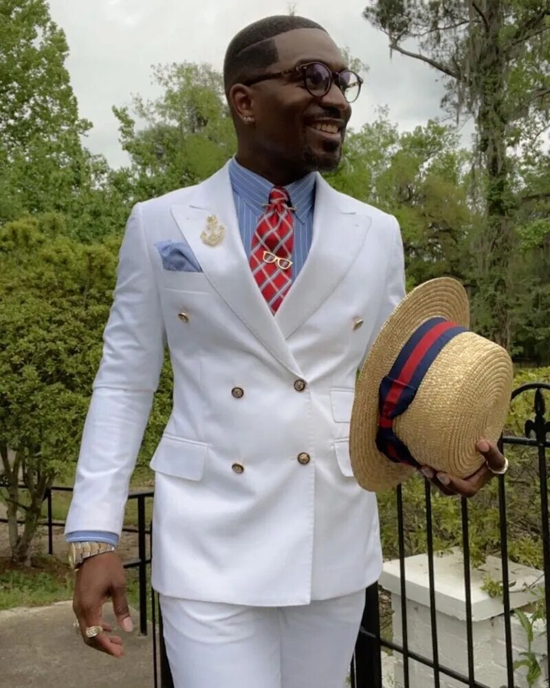 Double Breasted White Men Suits Terno Masculino Slim Fit 2 Pieces Jackets Pants Groom Wedding Business