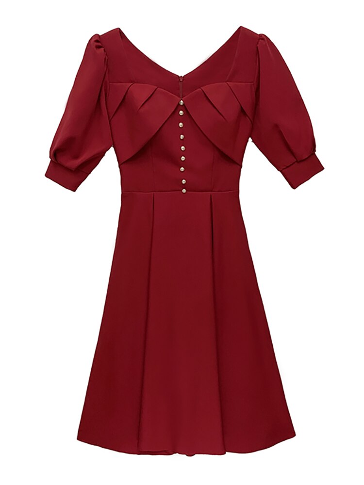 HUTI WJWYL New Arrival High Quality Women Red Puff Sleeve Square Collar Wedding Dress Summer Fashion Luxury Elegant Long Dress Korean Vintage Bodycon Vestidos