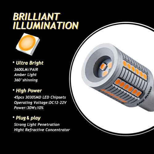 2x High Power Canbus581 BAU15S PY21W 30W 45 SMD 3030 LED Bulb Turn Signal Indicator Daytime Light Lamp Amber