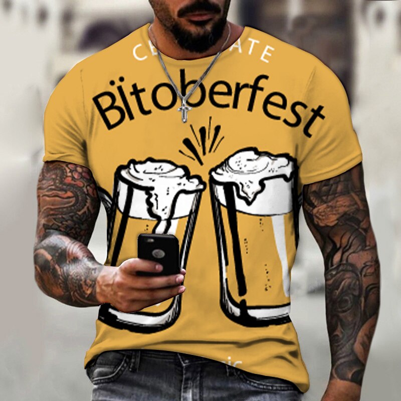 Summer Oktoberfest 3D Pattern Sports Men's T-shirt Casual Offie Luxury Street Fashion Hot Oversized Loose O-neck Short Sleeves
