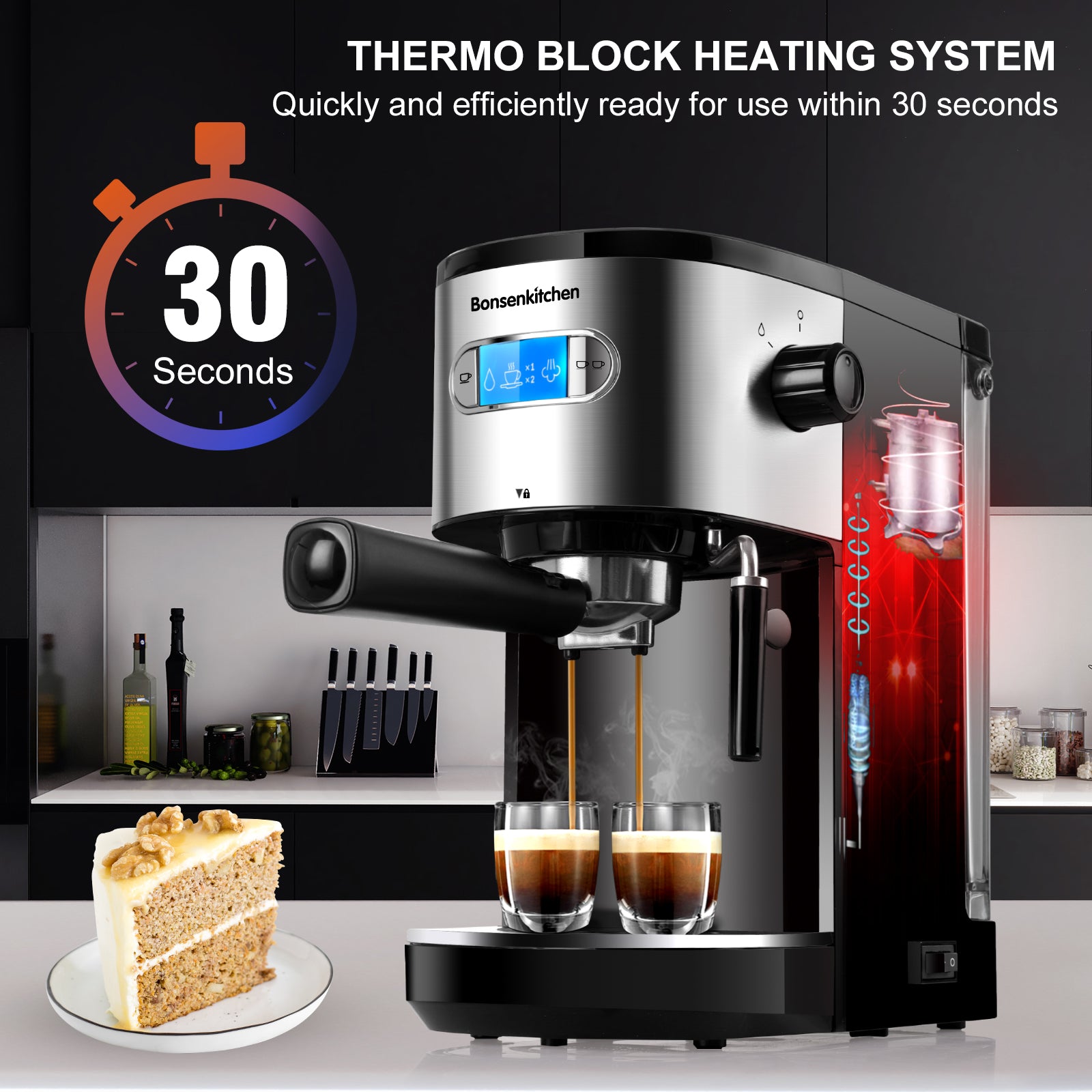 • ☕Fast Heating with Thermo Block System: Aluminum alloy thermo block with stainless stell heating channel to prevent aluminum oxidation and make the water healthier. Do not worry about leak out from the steamer and places when you using the espresso brewer. You can enjoy making the good kind of coffee in 45 seconds with this rapid heating system. Also making good espresso with temperature stability in this kitchen espresso machines.