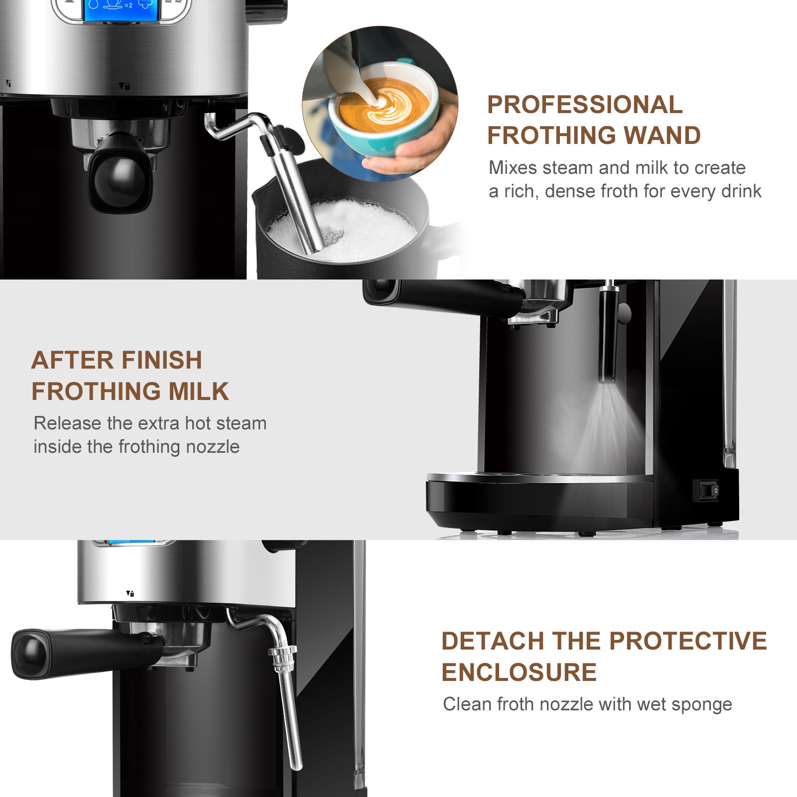 20 Bar Espresso Coffee Machine with Foaming Milk Frother, Maquina Cafe Espresso, Black CM8007