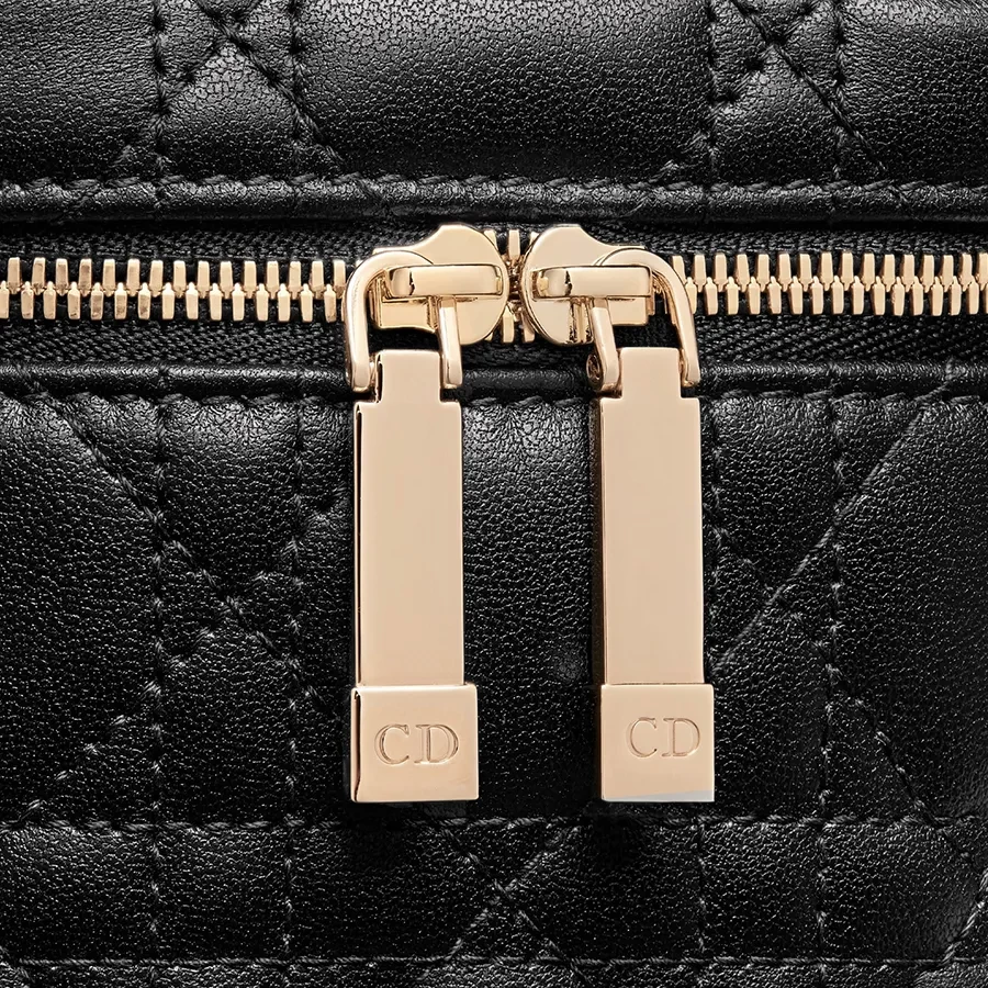 Túi Xách Tay Nữ Dior Vanity Micro Case S0935ONMJ Màu Đen được chế tác bằng da cao cấp với đường khâu Cannage cùng điểm nhấn khóa kéo kim hoàn thiện với tone màu vàng nhạt sang trọng.